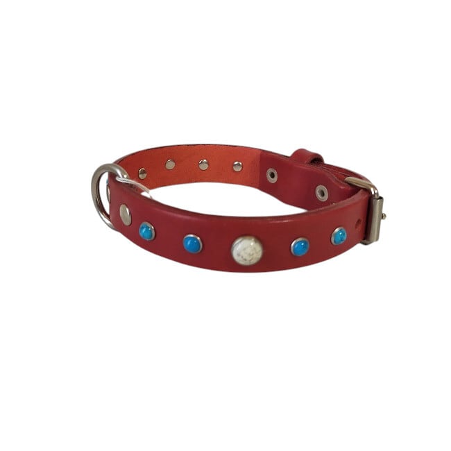M&R Factoryアカヌメ革製マールブル柄スタッズ首輪25005 #首輪 #ボストンテリア #フレンチブルドッグ | Cielo Blu/M&R Factory Leather Goods &Dog Good