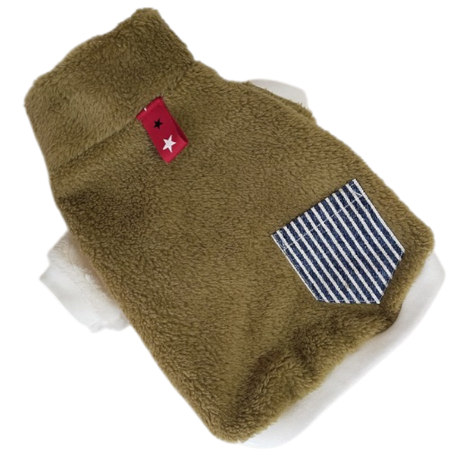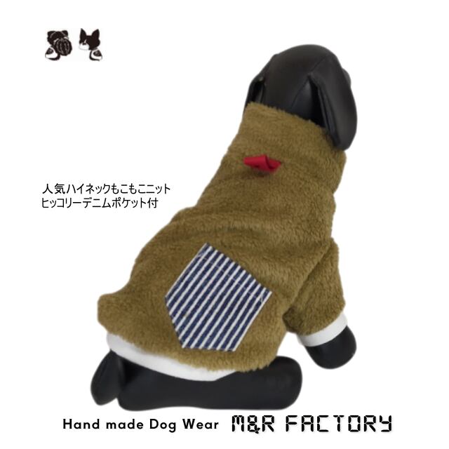 オリジナル・暖かもこもこハイネックニットヒッコリーポケット・袖(片白)付2609 #犬服 #ボストンテリア #フレンチブルドッグ #パグ #犬服 #ボストンテリア #フレンチブルドッグ #パグ #トイプードル | Cielo Blu/M&R Factory Leather Goods &Dog Good