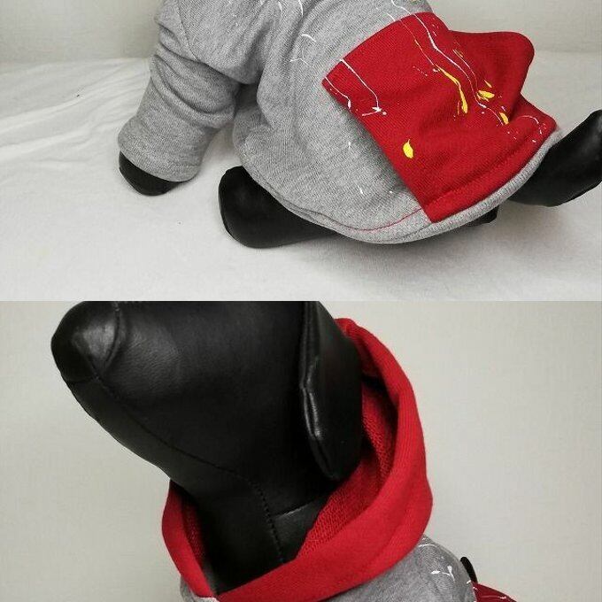 人気!!ペイント加工 定番裏毛ニットフーディわんこ服